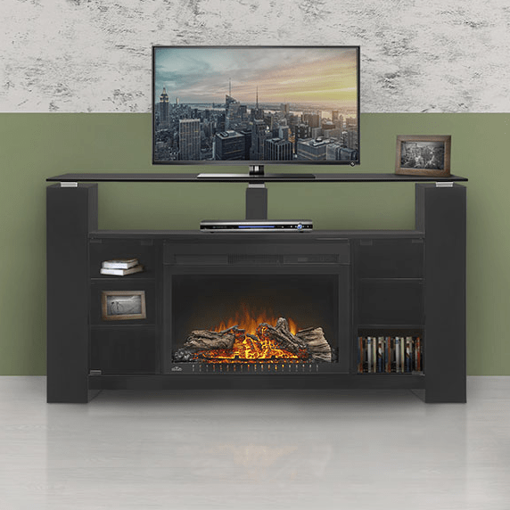 The presence of the Foley electric fireplace mantel package by Napoleon in sleek black sets an memorable presence in any room, adapting to any room style. The smoke tempered 10mm glass top, doors and shelves are lavishly contemporary. The simple, clean lines and minimalistic appearance allow the Foley to fuse into and elevate the current room feel. The darkened finish really allows the Cinema™ 27 firebox to illuminate and demand attention from anywhere in the room.